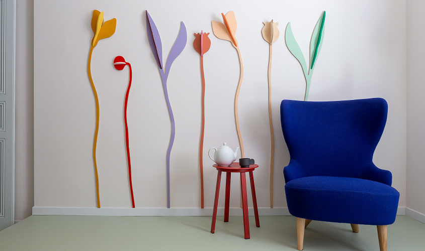 Derived from Studio ROOF’s Flowers collection, designed by Dutch artist Jantien Baas, this series of wooden wall flowers is crafted in birch plywood. The artist drew inspiration from Piet Oudolf’s gardens, focusing especially on the beauty and elegance of overblown flowers.