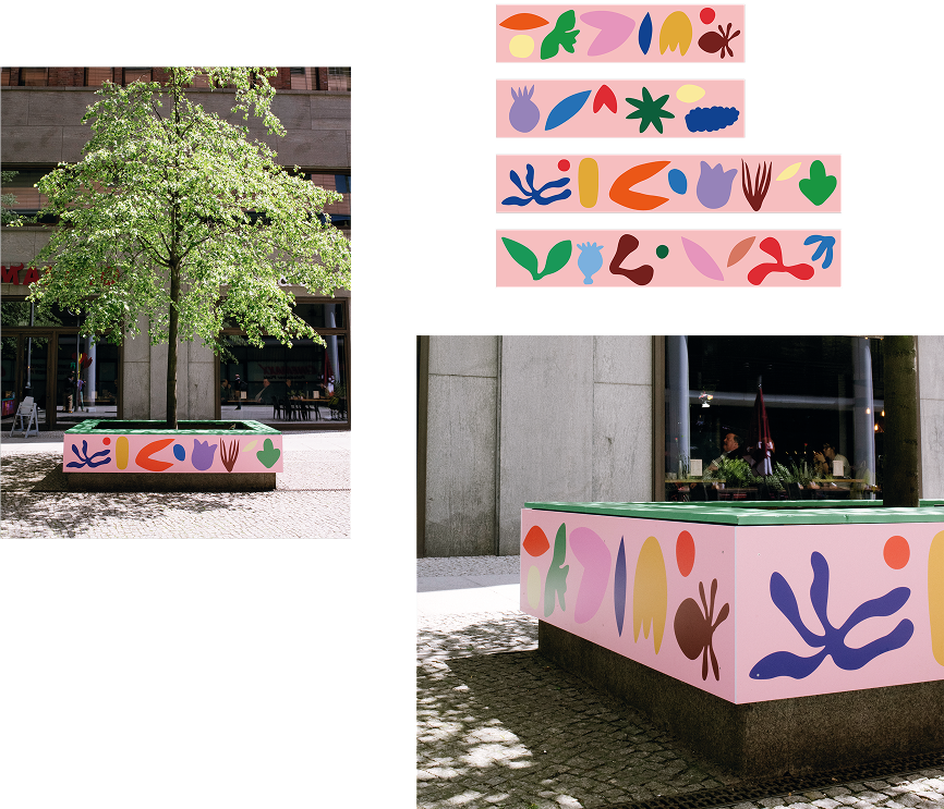 In 2024, our designs were featured in a large-scale artist takeover curated by Brookfield Properties at Potsdamer Platz in Berlin. We developed oversized versions of our work for the installation, produced by the local designer and artist collective UND.studio.