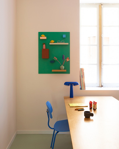 Designed by stylist Ines Beeftink, this collection of geometric wall shelves comes to life in bold colours. Simple, yet strikingly aesthetic. Named after their designer, the shelves create beautiful displays for the objects you cherish.